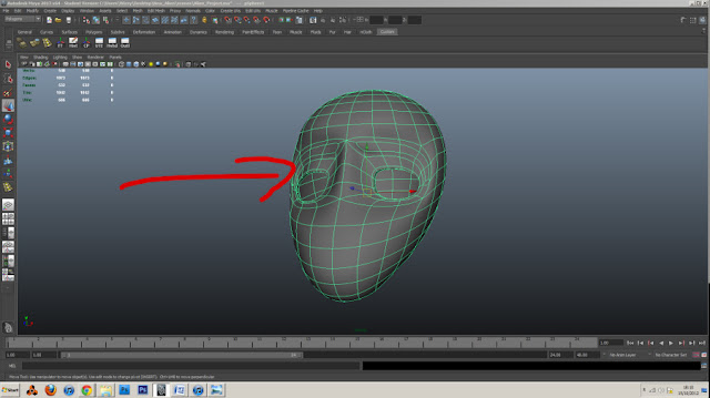 The Alien head (figure 2) has brows, eyes and a mouth yet to be extruded out.